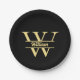 Prato De Papel Monograma Preto e Dourado | Nome Inicial Elegante