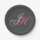 Prato De Papel Monograma Simples, Rosa, de Cinza Negra
