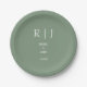 Prato De Papel Monogramas verdes de sábio simples Casamento moder
