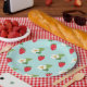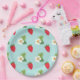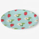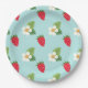 Morangos vermelhos brilhantes e flores bonito de morango em placas de papel azul-bebê excelente para qualquer ocasião de verão (ou quando você só quer que se sinta um pouco mais como o verão)
