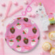 Um adorável padrão desenhado à mão de chocolate branco e chocolate de leite mergulhou morangos e uma mensagem "Você é Berry Sweet" em um fundo rosa. É um design super fofo nestes pratos de papelão personalizados!