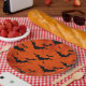 Prato De Papel Morcegos de Halloween no Fundo Laranja