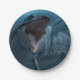 Prato De Papel Mosassauro perseguindo tubarão