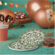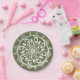 Esta mandala branca senta-se sobre um musgo escuro ou fundo verde-oliva. As cores são harmoniosas e equilibradas. Parte da coleção Payon Mandala.