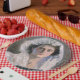 Esta design apresenta uma pintura do artista japonês Fujishima Takeji (1867-1943), que é notado por seu trabalho dentro de uma tradição de impressionismo ao estilo ocidental. Mostra uma senhora vestindo uma roupa branca elegante com um véu. Ela está segurando um fã preto em sua mão. A mulher está encarando a pintura com inteligência e confiança. É uma bela evocação da feminilidade. A arte original foi produzida em 1909.