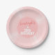 Estas placas de papel personalizadas, redondas e cor-de-rosa, do estilo vinil, adicionarão um sotaque uau à sua festa de aniversário de música pop. O rótulo de registro personalizado apresenta seu nome em um script cor-de-rosa profundo. A segunda linha anuncia o aniversário e pode ser personalizada para qualquer idade. Imagem de registro de rosa claro com rótulo rosa. Todo texto pode ser personalizado.