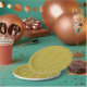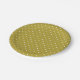 Pattern of white polka dots on a mustard yellow background. The dots are evenly spaced, creating a simple, vintage, playful aesthetic.