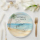 Um elegante design de Casamento com praia de aquarela e palmeiras que você pode personalizar com seus detalhes.