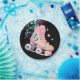 Jovem roleta patinando em folha de festa de aniversário. Preto e neon. Personalizado.