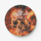 Prato De Papel Não Coma. Crânio flamejante no espaço