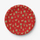 Prato De Papel Natal com padrão vermelho e ouro