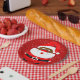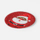 Um design de papel de Natal personalizado para o Pai Natal afro-americano, bonito, que apresenta um Papai Noel bonitinho e flocos de neve em fundo vermelho.