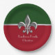 Personalize seu feriado que recolhe esta estação com estas placas de papel que caracterizam a imagem de uma flor de lis da prata do estilo do metal em um design verde e vermelho do Natal. Adicione seu nome da família ou do evento!