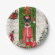 O Natal do Cachorro Miniatura, sentado do lado de fora da casa decorada com coroa de Natal, a árvore de Natal é uma ideia perfeita de presente de Natal para amantes de cachorros.