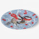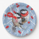 Prato De Papel Natal do Cuddling Chickadees | Azul/Vermelho
