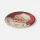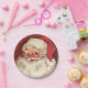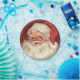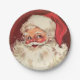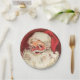 Papai Noel bonito com lábios vermelhos cereja, bochechas vermelhas rosadas e barba branca lisa. As placas de papel perfeitas para o Natal se juntam.