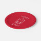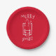 Felicidades de Natal com um copo de shot festivo e espelhante em pratos de papel vermelhos e brancos.