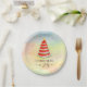 Este Natal divertido em julho As Placas de Papel são decoradas com uma melancia de melancia vermelha em árvore de Natal num fundo colorido. Porque nós criamos a nossa trabalho de arte, você não encontrará esta imagem exata de outros designers. Original Watercolor © Michele Davies.