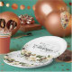 Uma placa de papel redonda, com o Natal em design, e Poinsettia, bagas e cones de pinho como elementos design. Placas de papel sazonal elegantes para a sua festa de Natal ou evento de Natal. Vem em fundo branco e azul profundo. Aqui em um fundo branco. Feliz comemoração de feriado. Veja os outros produtos correspondentes nesta coleção para um tema coeso.