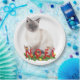 design de férias de excelente para amantes de gatos apresenta retrato aquoso de cor branca e cinza Gato siamês com NOEL festivo borda inferior