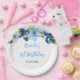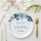 This beautiful and elegant plate features watercolor baby blue and navy blue flowers with foliage. The text combines handwritten script and serif fonts for a stylish and modern look. This is perfect for a spring or summer rustic birthday.