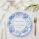 Elevate your reception décor with these navy roses French Toile de Jouy wedding paper plates. Featuring elegant blue roses in navy blue, royal blue, dusty blue, and deep blue tones, this floral design adds timeless charm to bridal showers, rehearsal dinners, and formal celebrations. Perfect for classic, romantic, or vintage-inspired themes, these stylish disposable plates combine beauty and convenience for a coordinated wedding tablescape.