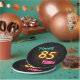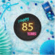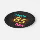 Sinal retrô brilhante de neon na parede de tijolos por 85 anos
