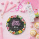 Este design, que chama a atenção, apresenta uma tipografia de um sinal de "Parabéns Feliz Aniversário", ao estilo de néon rosa, rodeada pelo lençol de palma tropical aqua combinado com o vibrante hibisco rosa e amarelo com flores de plumeria branca sobre um fundo de parede de tijolos. Você pode personalizar o texto de acordo com suas necessidades,