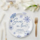 Neve apaixonada flocos de neve monogramas de inverno pratos de papel monogramas de chá de panela de inverno modelo, flocos de neve bicudos azuis com coração chá de panela pratos de papel personalizados festas de dois chás de panela fatias de madeira de boho suprimentos pratos de papel personalizados