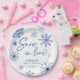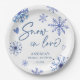 Neve no amor flocos de neve noivado de inverno modelo de pratos de papel monogramados, pratos de papel personalizados com flocos de neve boho azul empoeirado e corações, brindes de festa de noivado boho, pratos de papel personalizados