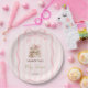Prato De Papel New Chapter Pink Bow Stripes Baby Shower