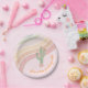 Estas pratos divertidas do arco-íris são perfeitas para aniversários de fiesta! As cores do Pastel dão-lhes um sentimento divertido e festivo. Localizar itens correspondentes no meu compro.