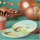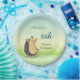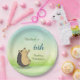 Um belo ouriço de desenho animado. Um adorável prato de papel de aniversário de um garoto.