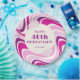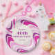 Flor retrógrada com estrutura redonda em linhas onduladas roxas e cor-de-rosa, placa de papel de fundo. Fornecimentos de festas perfeitos para a festa de aniversário de temas retrorados.