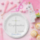 Prato De Papel Nome Azul do Garoto de Confirmação Cruz de Prata