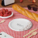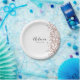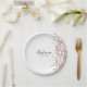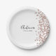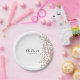 Um prato de papel simples e elegante, fácil de personalizar para muitas celebrações diferentes. Adicione o seu nome numa fonte preta manuscrita e a data numa fonte moderna abaixo. Um toque de confetes cor-de-rosa decora o lado direito.