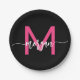 Prato De Papel Nome do Monograma da Rapariga Preta-Rosa Quente