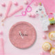 Prato De Papel Nome do Monograma de Aquarela Rosa Ruddy