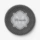 Prato De Papel Nome do Monograma do Quatrefoil Branco e Preto Mod