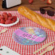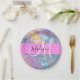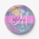 Prato De Papel Nome do Monograma Iridescente Holográfico Rosa Gir