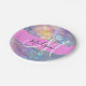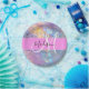 Nome do monograma holográfico e pratos de papel inicial, ligeiramente cor-de-rosa, pêssego e aqua. Seu nome personalizado e monograma são escritos em um elegante roteiro escrito à mão com um fundo rosa. Um aniversário perfeito ou presente de Natal!