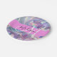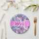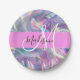 Nome do monograma holográfico e pratos de papel inicial, ligeiramente rosado, roxo e aqua e iridescente. Seu nome personalizado e monograma são escritos em um elegante roteiro escrito à mão com um fundo rosa. Um aniversário perfeito ou presente de Natal!