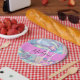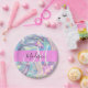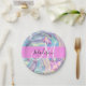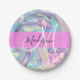 Prato De Papel Nome do Monograma Iridescente Holográfico Rosa Gir