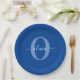 Prato De Papel Nome do Script Monograma Personalizado Branco Azul
