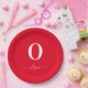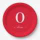 Prato De Papel Nome do Script Monograma Personalizado Vermelho e