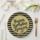 Prato De Papel Nome | Feliz Aniversário Simples Stripes Negras/Do