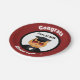 O design bonito, engraçado, lunático no centro desta placa de papel caracteriza um gato de gato malhado alaranjado legal que veste um boné de formatura e uns óculos de sol vermelhos escuro. Acima do gato são as palavras customizáveis, "classe de 20XX" na tipografia popular. O design inteiro é cercado por uma beira preta circular em um fundo branco. Cercar o gato é um fundo vermelho escuro com a mensagem customizável, "Congrats" acima do gato e de um nome customizável abaixo.