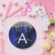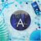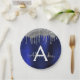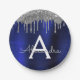 Prato De Papel Nome Monograma Brilho Azul Marinho Prata