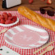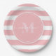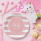 Prato De Papel Nome Monograma com Listras Rosa e Branco