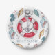 Prato De Papel Nome Personalizado da Embarcação de Cores Aquática